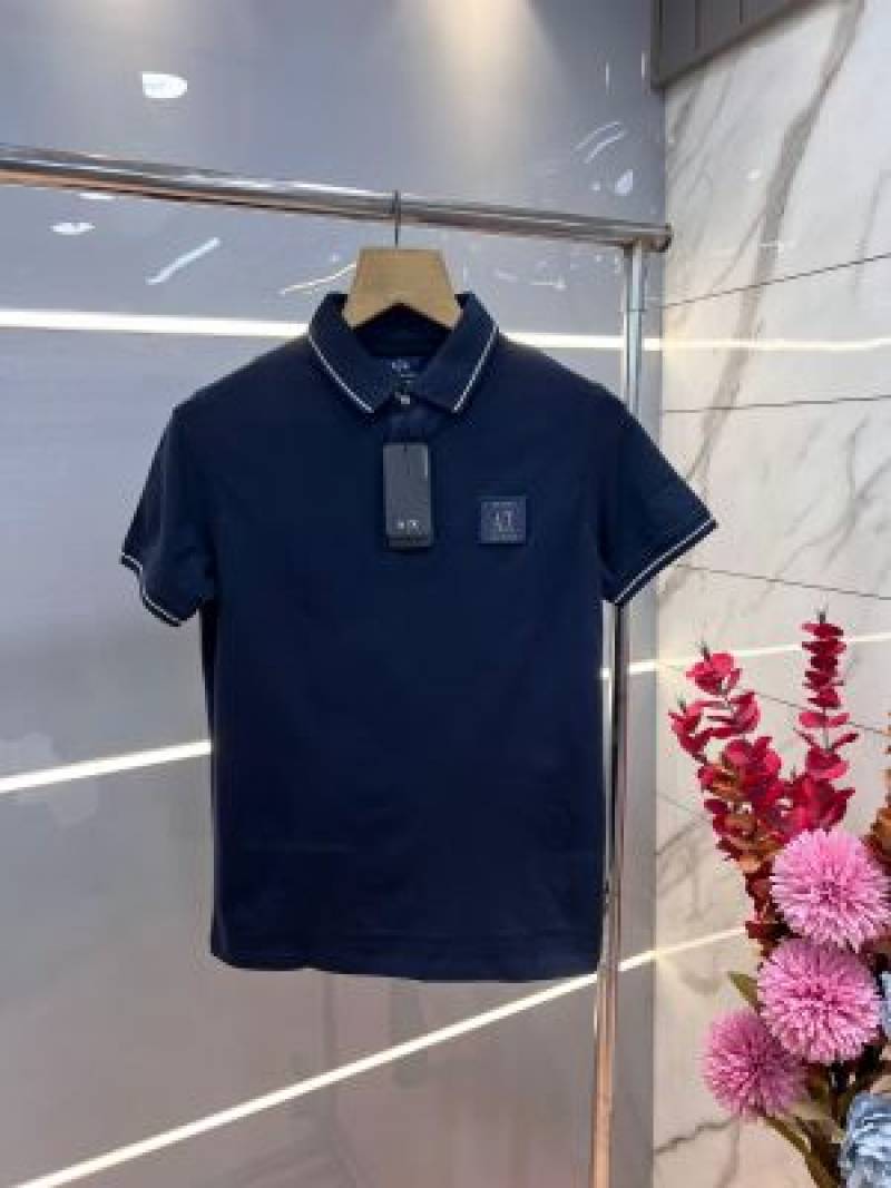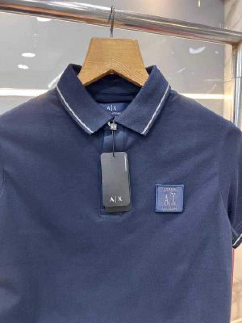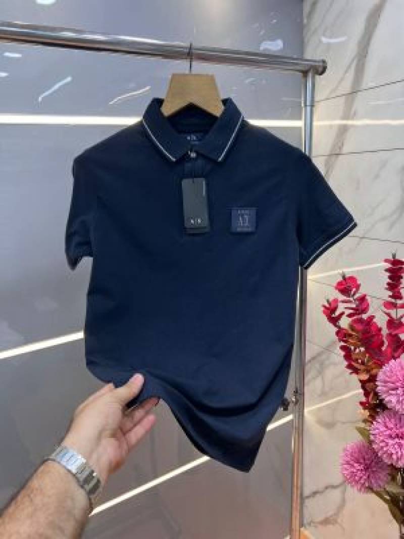 Arman i Exchange Navy Blue Premium Imported 240 GSM Interlock Cotton Lycra Fabric Polo T Shirt with Patch Logo 714